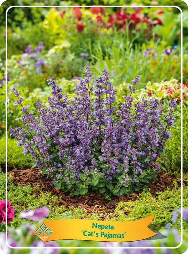 Mačja meta Nepeta faassenii ‘Cat’s Pajamas’ je izjemno privlačna, kompaktna trajnica, ki navdušuje z obilico modro-vijoličnih cvetov in lepo, urejeno rastjo. Cvetovi se nizajo vzdolž stebel skoraj po celotni dolžini, zato rastlina deluje zelo bogato cvetoče in polno. Sivo-zeleni, rahlo aromatični listi ustvarijo lep kontrast cvetovom, celotna rastlina pa na gredi deluje mehko, naravno in zelo dekorativno. Odlična je za sončne trajne grede, robove gredic, skalnjake, sajenje ob poteh ali v večje posode. Poleg dolgega cvetenja je zelo privlačna tudi za čebele, metulje in druge opraševalce.Nega: