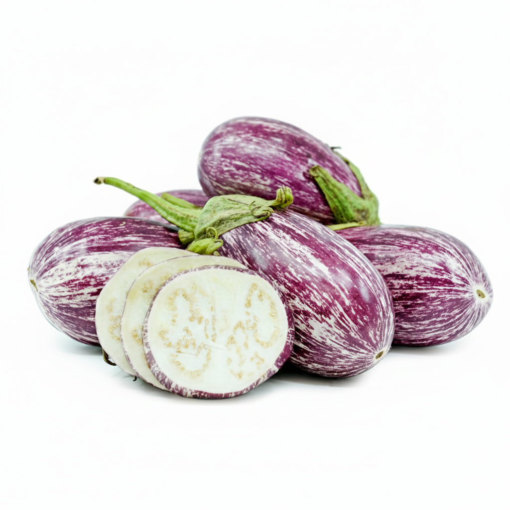 Izjemno dekorativen in kompakten jajčevec ‘Jewel Marble’ je posebna sorta z manjšimi, okroglimi plodovi, ki izstopajo po marmornem vzorcu v odtenkih bele, svetlo zelene in vijolične. Poleg atraktivnega videza navdušuje tudi z nežnim, sladkastim mesom brez grenkobe, zato je odličen za pečenje, dušenje ali pripravo eksotičnih in mediteranskih jedi. Zaradi kompaktne rasti je zelo primeren tudi za gojenje v loncih na balkonu ali terasi.Nega: