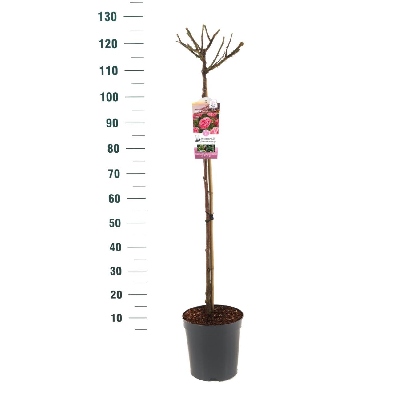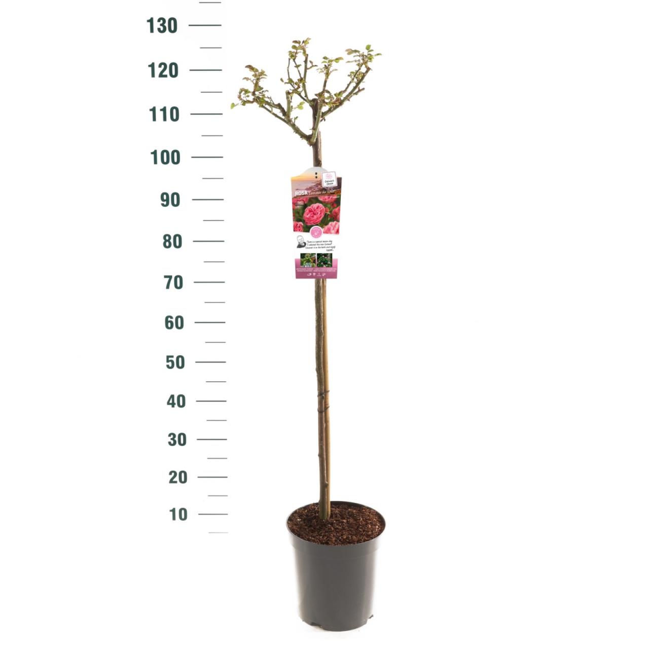 Rosa 'Leonardo da Vinci®'Opis rastline: stebelna vrtnica, višina stebla 90 cmBarva cvetov: rozaČas cvetenja: junij do septemberVonj cvetov: prijeten, srednje močanSorta odporna na bolezniRastlina razpoložljiva v L 24 cm na steblu 90 cm