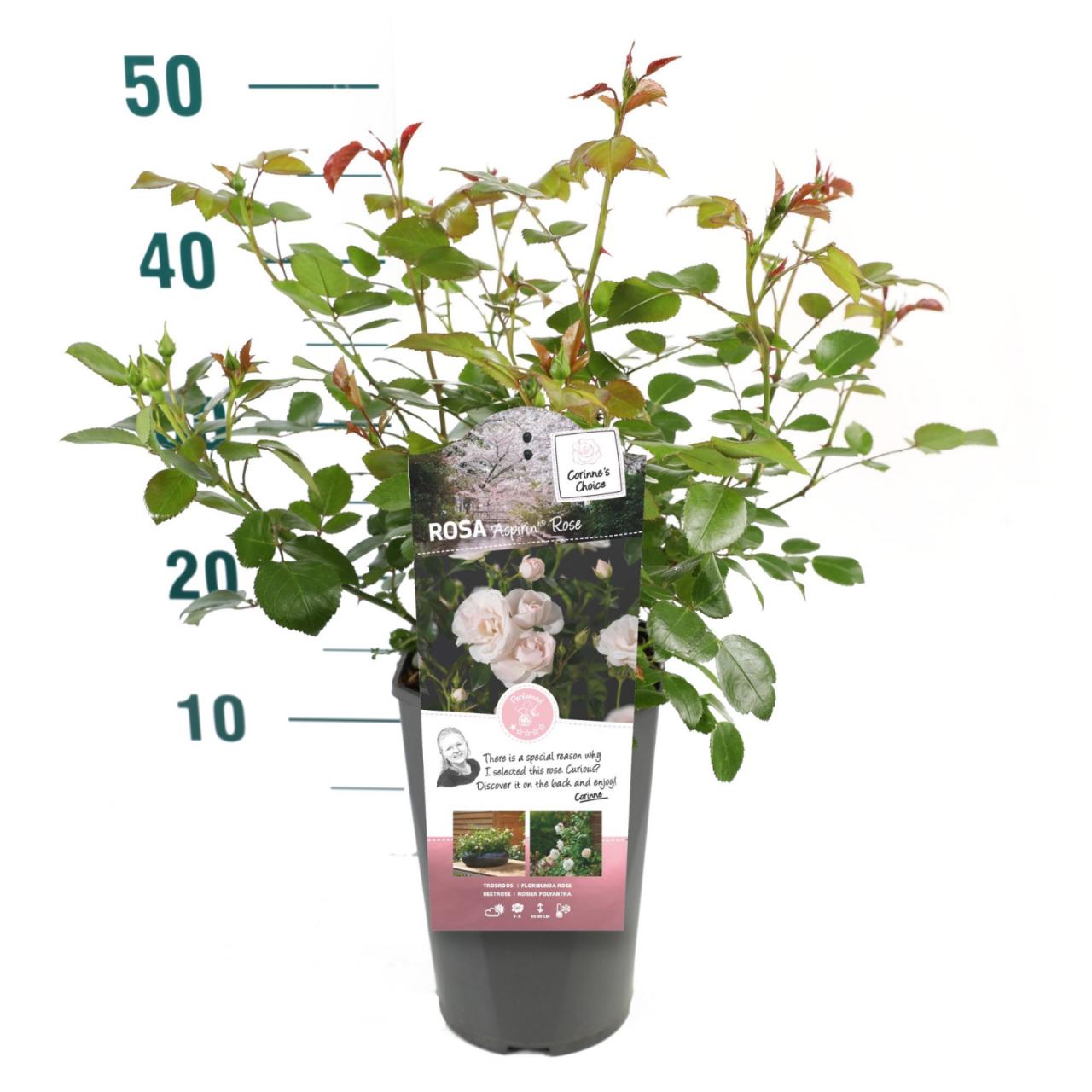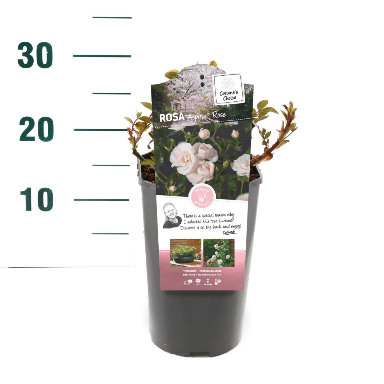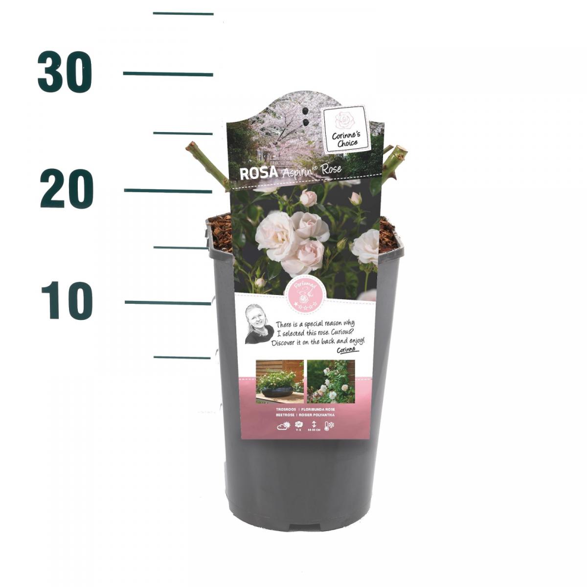 Rosa Aspirin Rose®Opis rastline: pokrovna vrtnicaBarva cvetov: belo rozaVišina rasti:60 - 80 cmOblika rasti: pokrovno - grmičastoVonj cvetov: minimalen