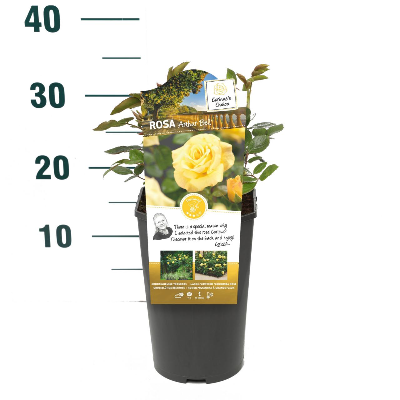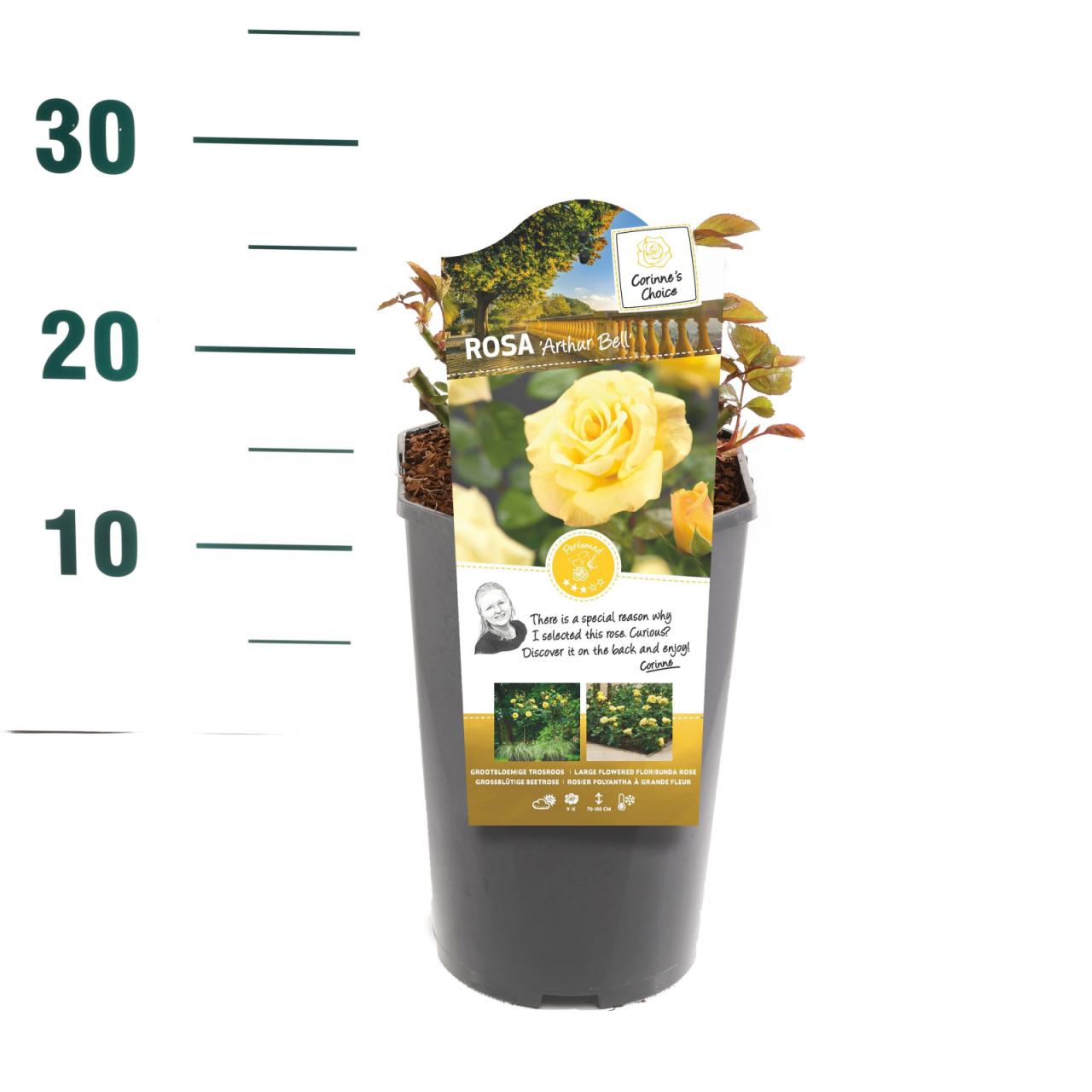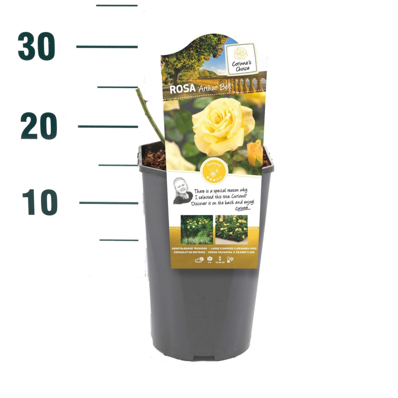 Rosa Arthur Bell®Opis rastline: mnogocvetna vrtnicaBarva cvetov: rumenaOblika rasti: grmičasta rastVonj cvetov: srednje močan Razpoložljiva v 3L loncu.