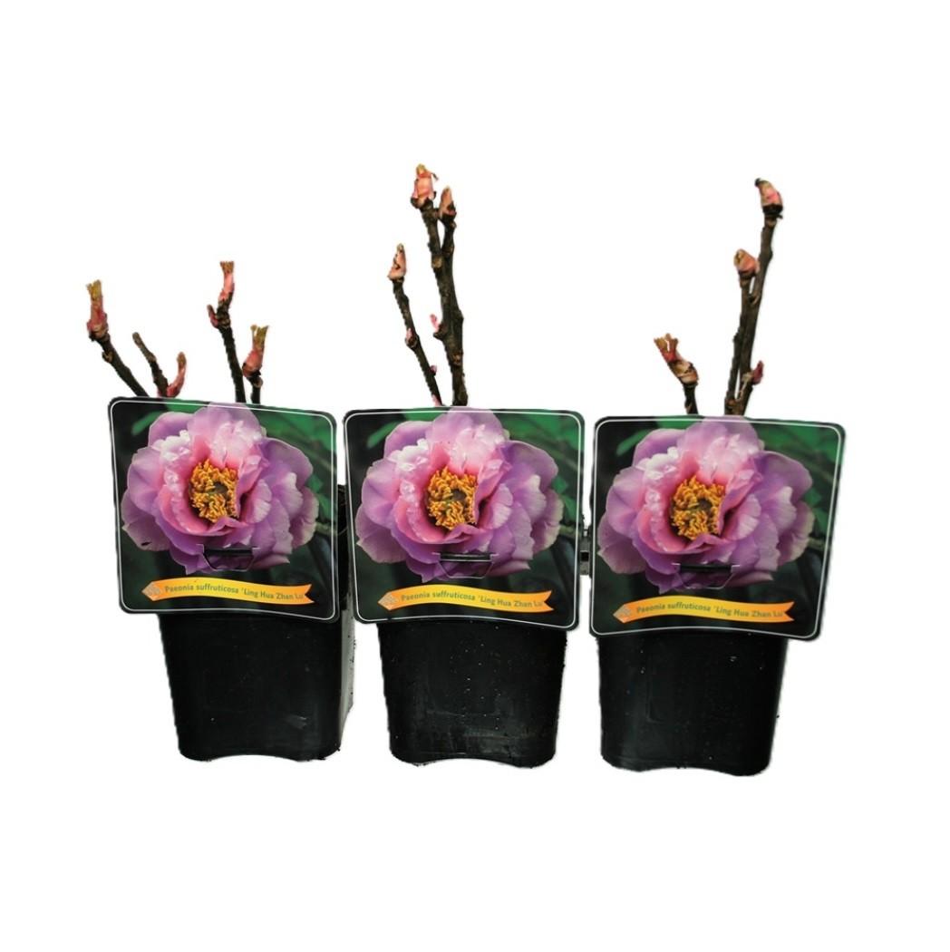 Prefinjena drevesna potonika Paeonia suffruticosa ‘Ling Hua Zhan Lu’ je prava vrtna lepotica, ki spomladi razvije velike, razkošne cvetove z bogato polnjeno strukturo in elegantnimi barvnimi prehodi. Sorta je cenjena zaradi svoje plemenite cvetne oblike in izrazitega okrasnega učinka – v gredi deluje kot osrednja točka, cvetovi pa vrtu dodajo pridih klasične, romantične elegance. Ker gre za olesenelo (grmasto) potoniko, z leti oblikuje močan, razvejan grm, ki vsako sezono cveti vse bolj bogato, če ima mirno rastišče in ustrezne pogoje.Nega: