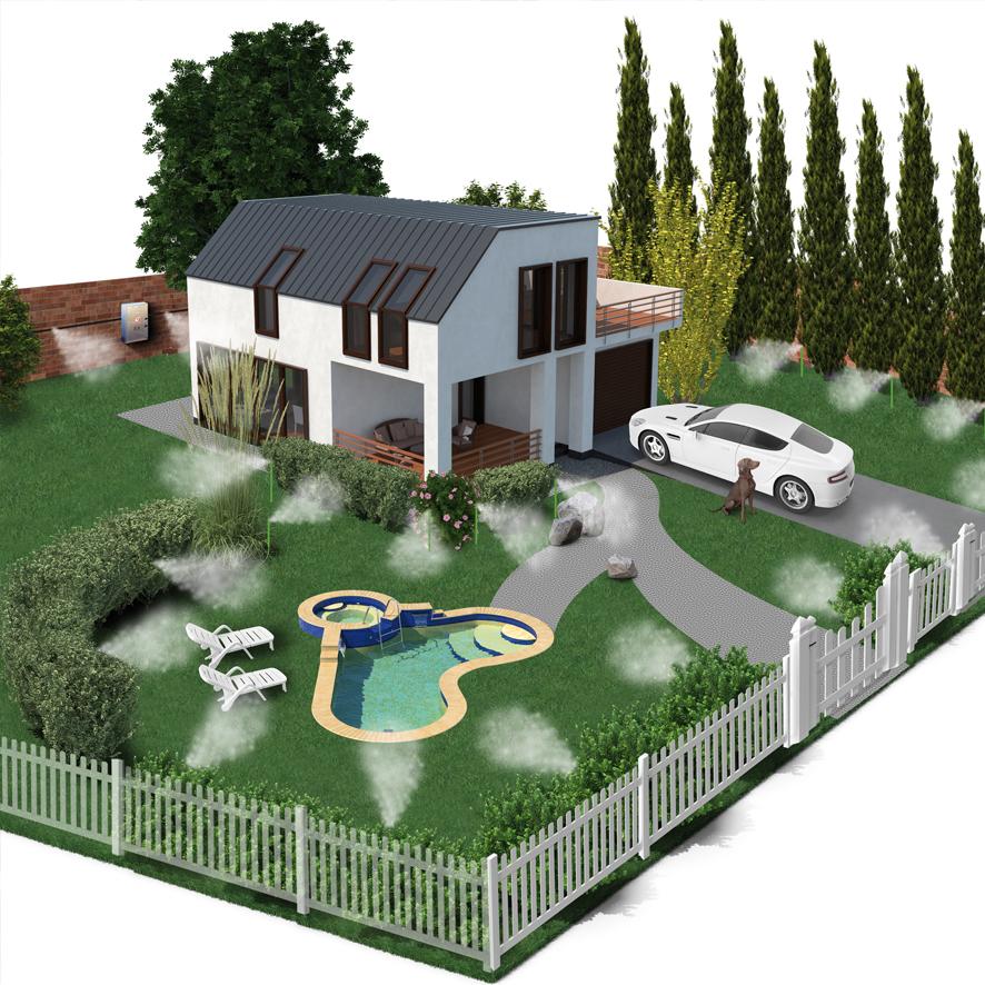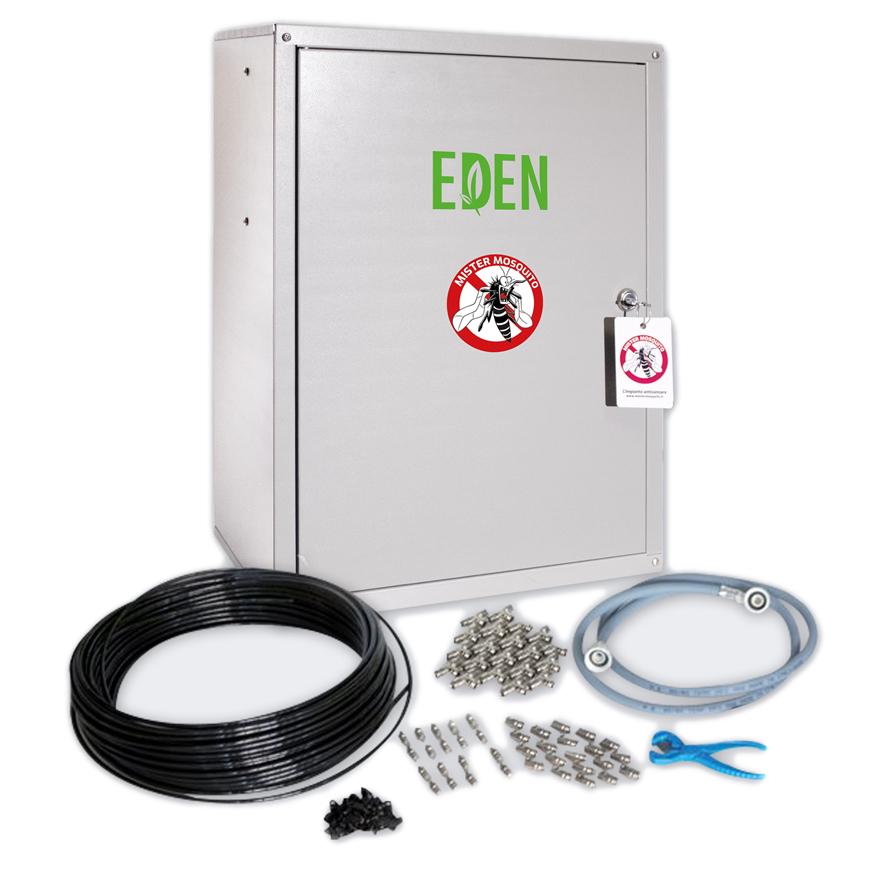 Komplet Mr Mosquito EDEN z 10 šobami je odlična rešitev za zaščito zunanjih površin pred nadležnimi komarji. Sistem deluje samodejno in učinkovito, saj ustvarja nevidno zaščitno meglico, ki odganja komarje brez neprijetnih vonjav ali škodljivih učinkov za ljudi, hišne ljubljenčke in rastline.
